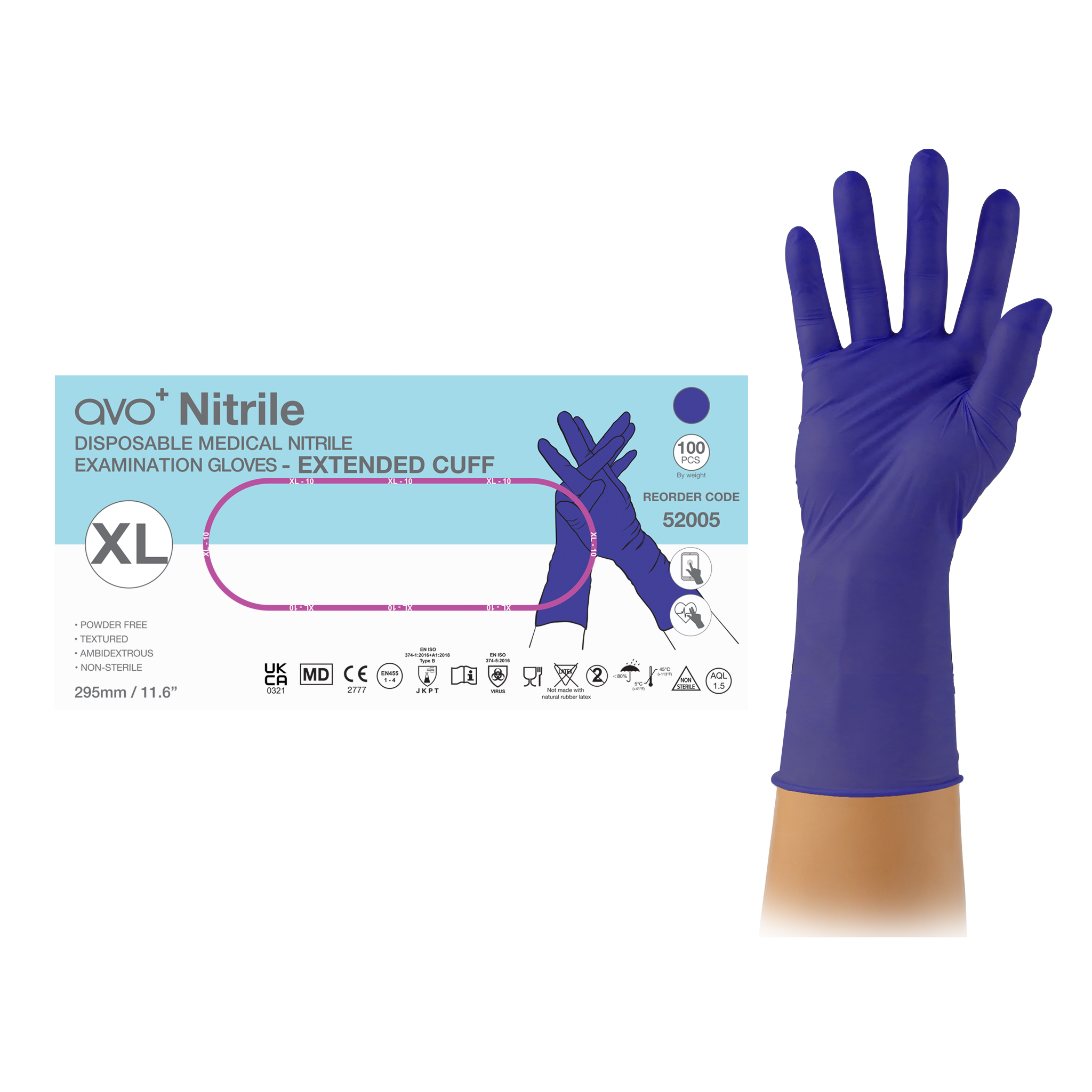 • Avo+ nítríl hanskar – lengri kragi 295 mm, púðurlausir (100 stk)