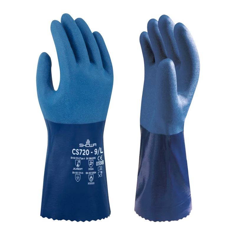 CS720 eru öflugir, nitrílhúðaðir hanskar sem veita mikla vörn gegn sýrum, olíum og öðrum efnum. Þeir ná upp á framhandlegg,...