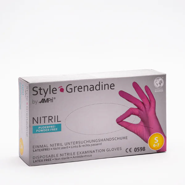 AMPri Grenadine eru hágæða bleikir einnota nitrílhanskar, hannaðir með öryggi og þægindi að leiðarljósi. Þeir eru sterkir, mjúkir og sveigjanlegir með þægilega áferð sem gerir þá tilvalda fyrir heilbrigðisþjónustu, snyrtistofur, matvælavinnslu, rannsóknir eða heimilisnotkun.
